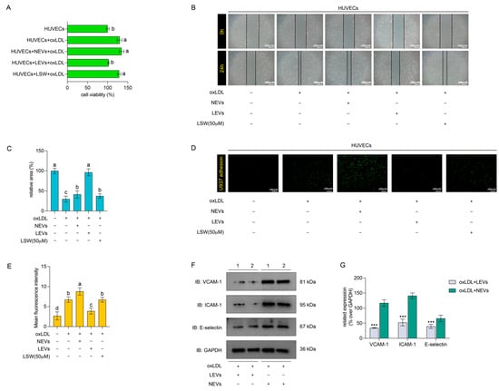 2.3. LEVs Attenuated the oxLDL-Induced Endothelial Dysfunction in HUVECs