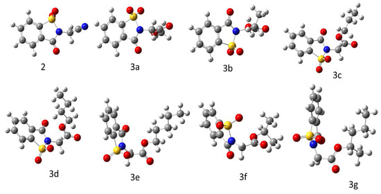 Optimized molecular structure of compounds 2, and 3a–g in ball and stick type format.