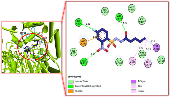Protein–ligand interaction profiles for active analog against α-Glucosidase represent the surface of the corresponding enzyme. The PLI profile for compound 6.