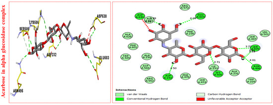 Protein–ligand interaction profiles against α-Glucosidase represent the surface of the corresponding enzyme. The PLI profile for acarbose.