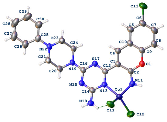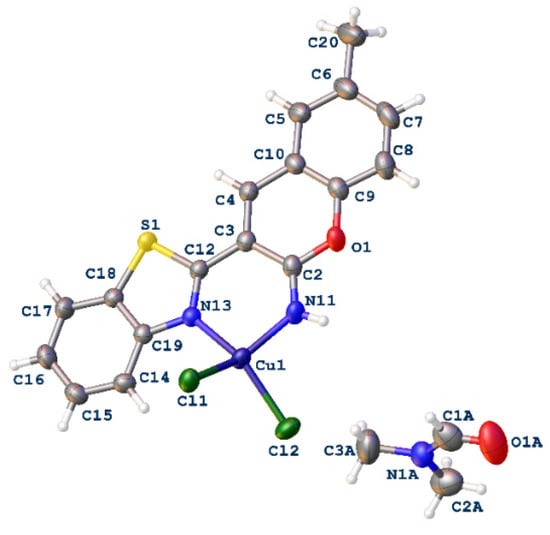 3.2.5. Synthesis of Copper(II) Complexes of 3-(benzothiazol-2-yl)-2H-chromen-2-imine Derivatives 6a-c (General Procedure)