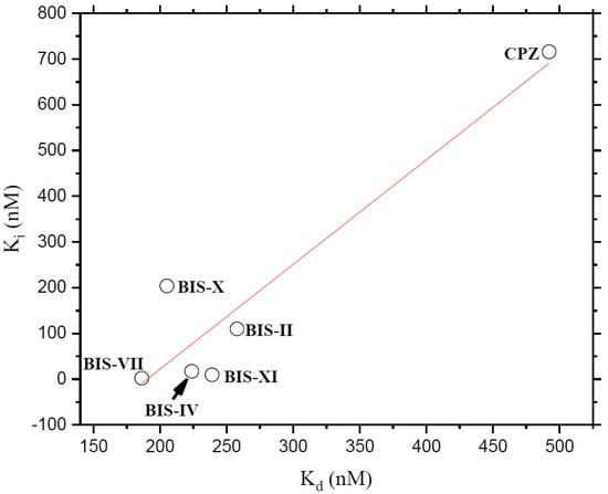 Relationship between experimental Kd and theoretical Ki of the BIM ligands.
