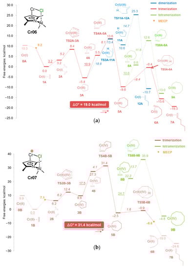- Yang, Y.; Liu, Z.; Cheng, R.; He, X.; Liu, B. Mechanistic DFT Study on Ethylene Trimerization of Chromium Catalysts Supported by a Versatile Pyrrole Ligand System. Organometallics 2014, 33, 2599–2607. [Google Scholar] [CrossRef]