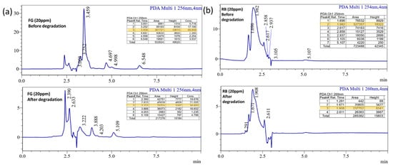 2.4. Sun Light Active Photocatalytic Study of Fast Green (FG) and Rose Bengal (RB)