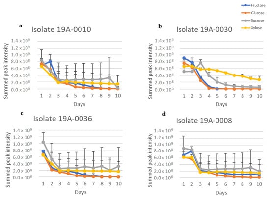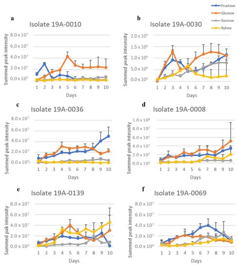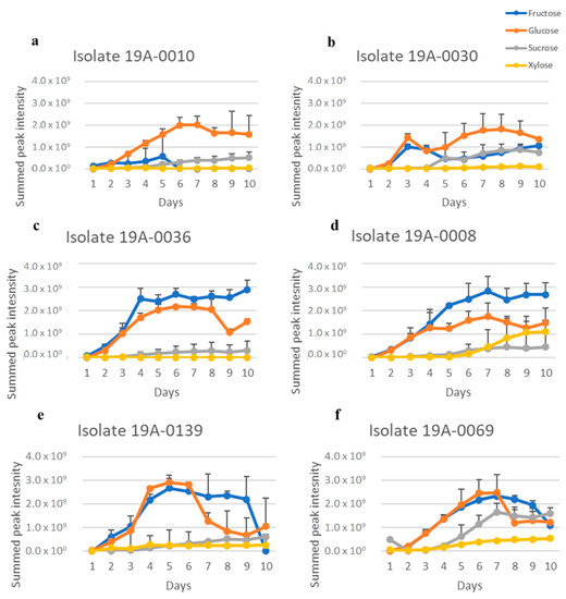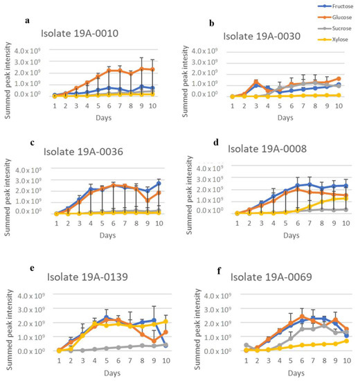 2.1. In Vitro Sugar and Nitrogen Metabolization by Rhizopus stolonifer
