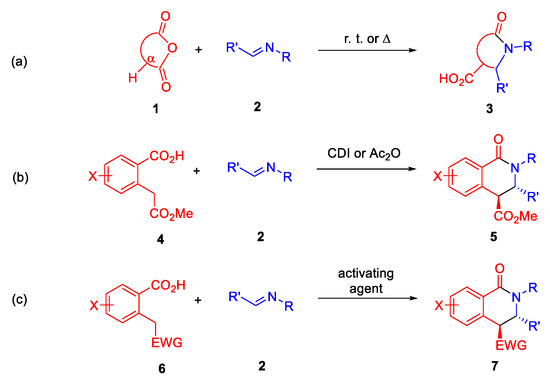- Krasavin, M.; Dar’In, D. Current diversity of cyclic anhydrides for the Castagnoli–Cushman-type formal cycloaddition reactions: Prospects and challenges. Tetrahedron Lett. 2016, 57, 1635–1640. [Google Scholar] [CrossRef]