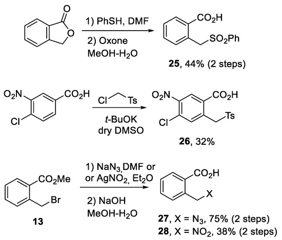 Synthesis of sulfone (25 [26]–26 [17]), azide (27 [27]) and nitro (28 [28]) compounds as potential substrates for the new type of the CCR.