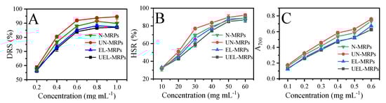 | UN-MRPs | −2.68 ± 0.03 a | −0.14 ± 0.02 c | −2.21 ± 0.01 d | 3.47 ± 0.02 b |