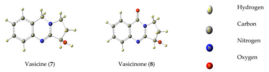 - Liu, W.; Wang, Y.; He, D.-D.; Li, S.-P.; Zhu, Y.-D.; Jiang, B.; Cheng, X.-M.; Wang, Z.-T.; Wang, C.-H. Antitussive, expectorant, and bronchodilating effects of quinazoline alkaloids (±)-vasicine, deoxyvasicine, and (±)-vasicinone from aerial parts of Peganum harmala L. Phytomedicine 2015, 22, 1088–1095. [Google Scholar] [CrossRef]