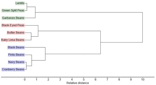 Ten ground pulse samples were provided by Dr. Raghavendhar R. Kotha [16], received from Prof. John Finley at Louisiana State University. Samples were stored at −80 °C and brought to room temperature shortly before weighing and extraction. Samples grouped according to genus and species were as follows: four Phaseolus vulgaris (black, cranberry, navy, and pinto beans), two Phaseolus lunatus (baby lima and butter beans), and one each of Vigna unguiculata (black-eyed peas), Cicer arietinum (garbanzo beans), Pisum sativum (green split peas), and Lens culinaris (lentils).