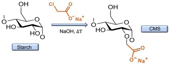 Representation of the synthesis of the carboxymethyl starch (CMS).
