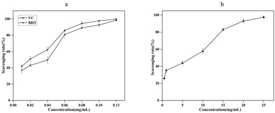 The clearance ability of VC, BHT (a) and AgEo (b) for ABTS radical.