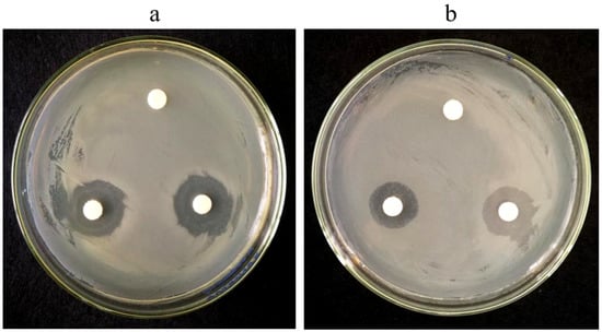 The DIZ was determined by method of filter paper diffusion [26]. The AgEo was filtered through 0.22 mm Millipore filters (Qingfeng Filter Equipment Material Co., Ltd., Ji’an, China) 100 μL suspension of bacteria (1 × 107 CFU/mL) cultured overnight was spread on the LB agar plate. Three filter paper (6 mm in diameter) were placed on the inoculated agar, two of them was added 10 μL essential oil by a micropipette and one was added with sterile water as control. The DIZ was measured after 24 h of in curation at 37 °C. Tests were performed in triplicate [19].