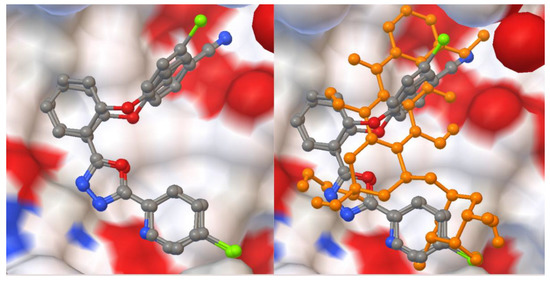 As demonstrated in Figure 6, Figure 7, Figure 8, Figure 9, Figure 10 and Figure 11, molecules bound to the active site and overlapped with reference molecules. Our initial findings indicate that these compounds have reasonable ligand-receptor binding interactions.