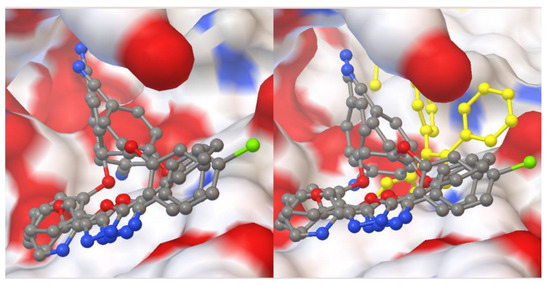 Superimposing poses of best scored compounds with and without reference drug crizotinib against lung cancer.