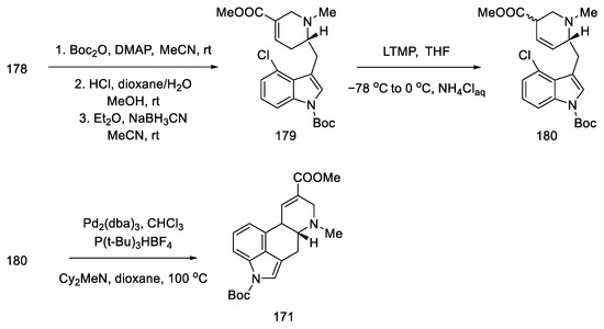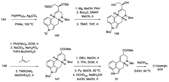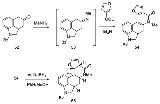 - Rebek, J.; Tai, D.F.; Shue, Y.K. Synthesis of Ergot Alkaloids from Tryptophan. J. Am. Chem. Soc. 1984, 106, 1813–1819. [Google Scholar] [CrossRef]
