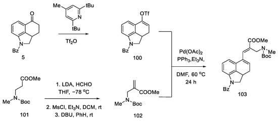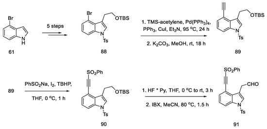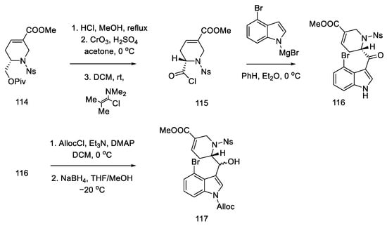 - Points, G.L.; Stout, K.T.; Beaudry, C.M. Regioselective Formation of Substituted Indoles: Formal Synthesis of Lysergic Acid. Chem. Eur. J. 2020, 26, 16655–16658. [Google Scholar] [CrossRef]