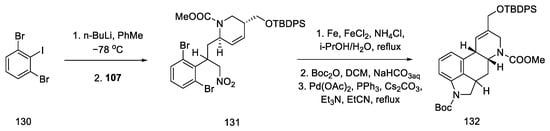 - Ninomiya, I.; Kiguchi, T.; Hashimoto, C.; Naito, T. A New Synthesis of (±)-Lysergic Acid. Heterocycles 1982, 19, 2279. [Google Scholar] [CrossRef]