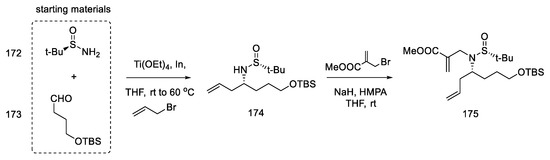 - González-Gómez, J.C.; Medjahdi, M.; Foubelo, F.; Yus, M. Stereoselective α-Aminoallylation of Aldehydes with Chiral Tert-Butanesulfinamides and Allyl Bromides. J. Org. Chem. 2010, 75, 6308–6311. [Google Scholar] [CrossRef]