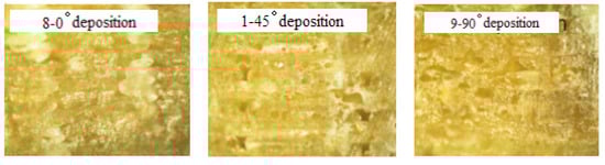 Optical microscopy images (×100 times) of specimen cross section at different deposition angles.