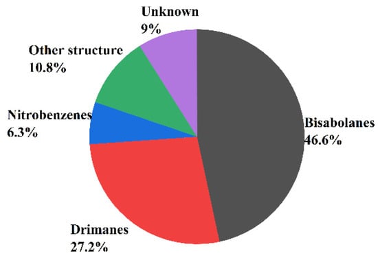 - Elissawy, A.M.; El-Shazly, M.; Ebada, S.S.; Singab, A.B.; Proksch, P. Bioactive terpenes from marine-derived fungi. Mar. Drugs 2015, 13, 1966–1992. [Google Scholar] [CrossRef]