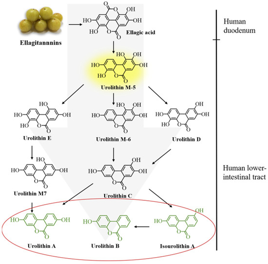 - Selma, M.V.; Beltrán, D.; García-Villalba, R.; Espín, J.C.; Tomás-Barberán, F.A. Description of urolithin production capacity from ellagic acid of two human intestinal Gordonibacter species. Food Funct. 2014, 5, 1779–1784. [Google Scholar] [CrossRef] [PubMed]