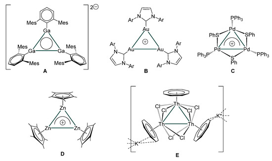 - Boldyrev, A.I.; Wang, L.S. Beyond organic chemistry: Aromaticity in atomic clusters. Phys. Chem. Chem. Phys. 2016, 18, 11589–11605. [Google Scholar] [CrossRef] [PubMed]