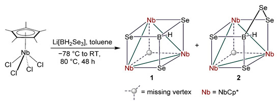 2.1. Reactivity of [Cp*NbCl4] with Li[BH2Se3]