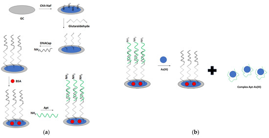 - Baghbaderani, S.S.; Noorbakhsh, A. Novel chitosan-Nafion composite for fabrication of highly sensitive impedimetric and colorimetric As(III) aptasensor. Biosens. Bioelectron. 2019, 131, 1–8. [Google Scholar] [CrossRef] [PubMed]
