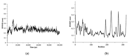 - Berendsen, H.J.C.; van der Spoel, D.; van Drunen, R. GROMACS: A Message-Passing Parallel Molecular Dynamics Implementation. Comput. Phys. Commun. 1995, 91, 43–56. [Google Scholar] [CrossRef]