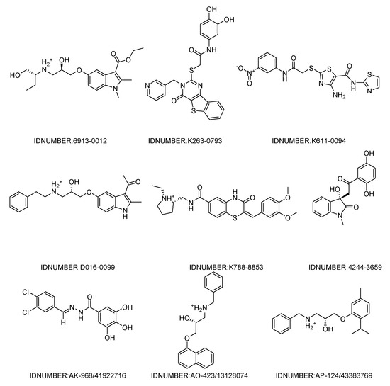 Chemical structures of the nine compounds identified by virtual screening.