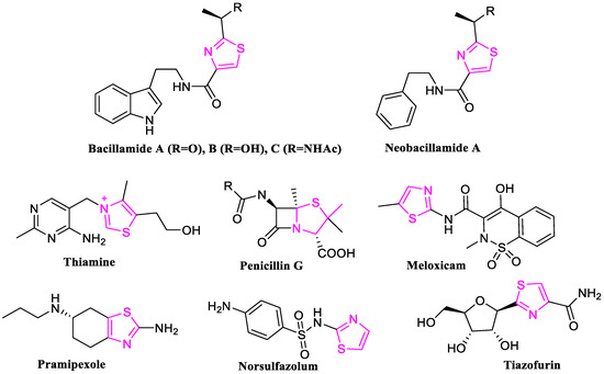 The thiazole cycle is widespread in natural compounds such as vitamin B1 (Thiamine), Penicillin, thiazole alkaloid, e.g., bacillamide A, B, C and neobacillamide A [5,6,7].