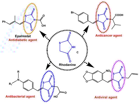 - Ahmad Khairul Daniel bin Ahmad Kamar, Lim Ju Yin, Chin Tze Liang, Gan Tjin Fung, Vasudeva Rao Avupati, Rhodanine scaffold: A review of antidiabetic potential and structure–activity relationships (SAR). Med. Drug Discov. 2022, 15, 100131. [CrossRef]