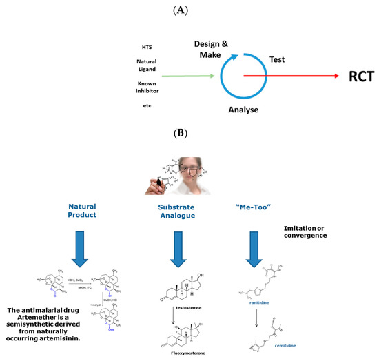 Drug Design is an activity that often forms part of the Drug Discovery process. See Figure 1A. I would be loath to put this proposition more strongly. Not because design never features in the discovery of drugs but because its relative importance is typically overstated, sometimes massively so. I say this not as an opponent of design but as a fierce proponent. Many—perhaps even most—drugs have not been designed, at least not in a complete sense. Many drugs are still derived from naturally occurring substances or other “easy” starting points and have only undergone limited structural modification to yield medically and commercially viable pharmacological agents. See Figure 1B.