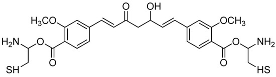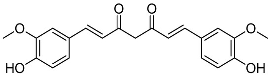 Curcumin (Figure 11) and two related chemicals, i.e., demethoxycurcumin and bis-demethoxycurcumin (curcuminoids), are the primary secondary metabolites of Curcuma longa and other Curcuma species [73,74]. Curcumin, as a natural product, has several biological actions, such as anti-inflammatory, antibacterial and anticancer activities [75,76].