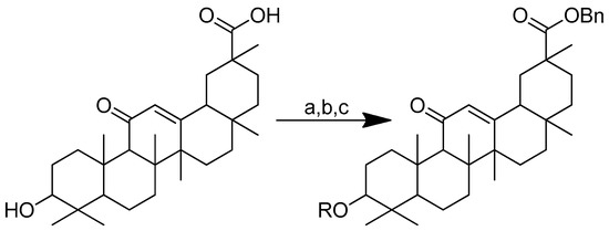 - Zhou, F.; Wu, G.R.; Cai, D.S.; Xu, B.; Yan, M.M.; Ma, T.; Guo, W.B.; Zhang, W.X.; Huang, X.M.; Jia, X.; et al. Synthesis and biological activity of glycyrrhetinic acid derivatives as antitumor agents. Eur. J. Med. Chem. 2019, 178, 623–635. [Google Scholar] [CrossRef]
