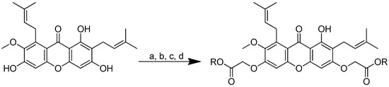 - Pinto, M.M.M.; Palmeira, A.; Fernandes, C.; Resende, D.I.S.P.; Sousa, E.; Cidade, H.; Tertian, M.E.; Correia-Da-silva, M.; Cravo, S. From Natural Products to New Synthetic Small Molecules: A Journey through the World of Xanthones. Molecules 2021, 26, 431. [Google Scholar] [CrossRef]