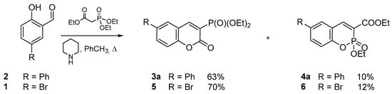 - Koleva, A.I.; Petkova-Yankova, N.I.; Nikolova, R.D. Synthesis and Chemical Properties of 3-Phosphonocoumarins and 1,2-Benzoxaphosphorins as Precursors for Bioactive Compounds. Molecules 2019, 24, 2030. [Google Scholar] [CrossRef]
