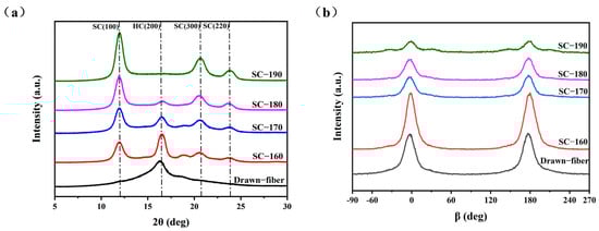 (a) WAXD patterns of crystal structure and (b) WAXD patterns of crystal orientation.
