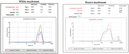 Dynamic light scattering (DLS) result for AgNPs prepared from white and brown mushroom.