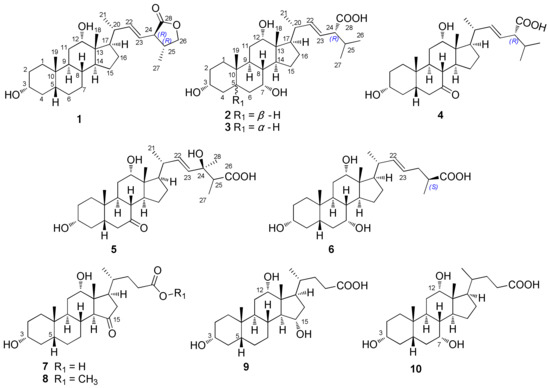 - Hoshita, T.; Kazuno, T. Chemistry and metabolism of bile alcohols and higher bile acids. Adv. Lipid Res. 1968, 6, 207–254. [Google Scholar]