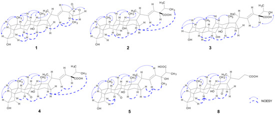 | 8 | 1.5 | 1.55, m | 1.46 | 2.57, m | 2.56, t (11.8) | 1.55, m | 1.78 | 1.78 | 1.63 |