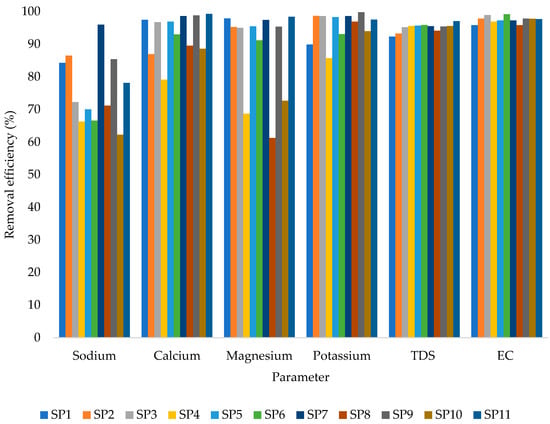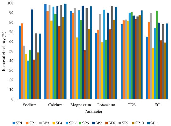 Figure 3 shows that calcium had the highest recorded removal efficiency at 98.9% and sodium (Na