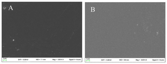 In Figure 3, the surface appearance of neat chitosan film and CBPR 2% film are reported. As shown, the surface of the chitosan film was quite homogeneous, and after incorporation of bud poplar extract, no change in microstructure could be observed.