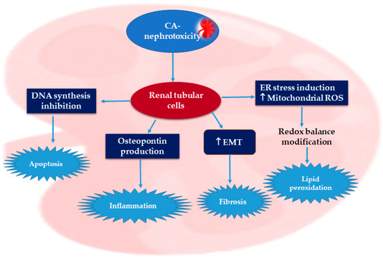Proposed mechanisms of CA oxidative stress-induced reno-toxicity.
