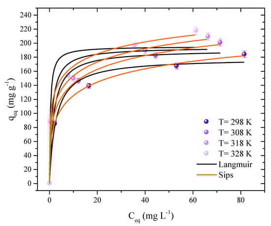 | KF ((mg g−1)(mg L−1)−1/nF) | 102.9 | 113.8 | 120.1 | 127.7 |