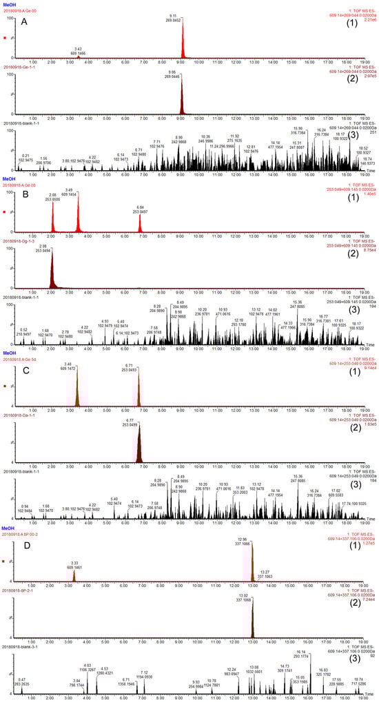 4.4. Sample Preparation and Ultra-Performance Liquid-Chromatography–Quadruple-Time-of-Flight–Mass Spectrometry (UPLC–QTOF–MS) Analysis