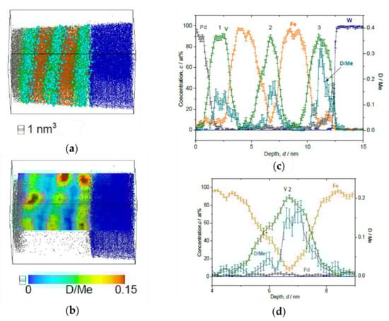 - Gemma, R.; Al-Kassab, T.; Kirchheim, R.; Pundt, A. APT Analyses of Deuterium-Loaded Fe/V Multi-Layered Films. Ultramicroscopy 2009, 109, 631–636. [Google Scholar] [CrossRef]