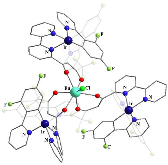 - Chen, F.-F.; Bian, Z.-Q.; Liu, Z.-W.; Nie, D.-B.; Chen, Z.-Q.; Huang, C.-H. Highly efficient sensitized red emission from europium (III) in Ir-Eu bimetallic complexes by 3MLCT energy transfer. Inorg. Chem. 2008, 47, 2507–2513. [Google Scholar] [CrossRef] [PubMed]