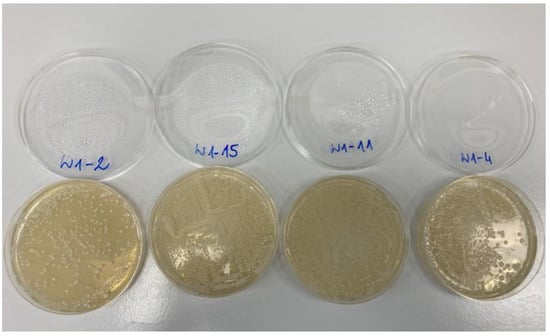 Our process for brewing non-alcoholic beer with Saccharomycodes ludwigii WSL17 produced microbiologically pure beverages. Apart from yeast cells, there were no bacteria or molds identified in the beers that would indicate contamination or spoilage. An indicative photograph of the Petri dishes with microbial cultures (grown in the experimental NABs) is provided in Figure 1.